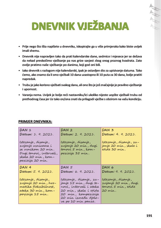 Knjiga Truba – moj instrument predstavlja prvu knjigu u Crnoj Gori i regionu ovog tipa. Napisana je za potrebe nastave trube u osnovnoj muzičkoj školi, a mogu je koristiti i početnici na svim limenim duvačkim instrumentima. Sadrži precizno objašnjene sve tehničke aspekte sviranja trube, počev od pravilnog stava, istezanja tela i vežbi disanja, do konkretnih vežbi dugih tonova, fleksibilnosti, intervala, lestvica i etida. Knjiga je pisana savremenim jezikom, prilagođena deci i sadrži dodatna poglavlja, poput pripreme za javni nastup, liste predloga za slušanje muzike i dnevnika vežbanja, kojima autorka daje lični pečat, sagledavajući širi kontekst učenja sviranja duvačkog instrumenta, vaspitanja i obrazovanja mladih.